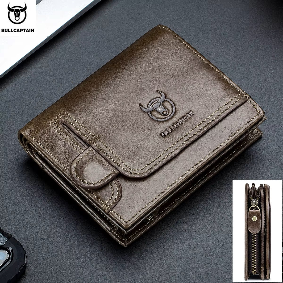 Billetera Bullcaptain Hombre Cuero Genuino Monedero