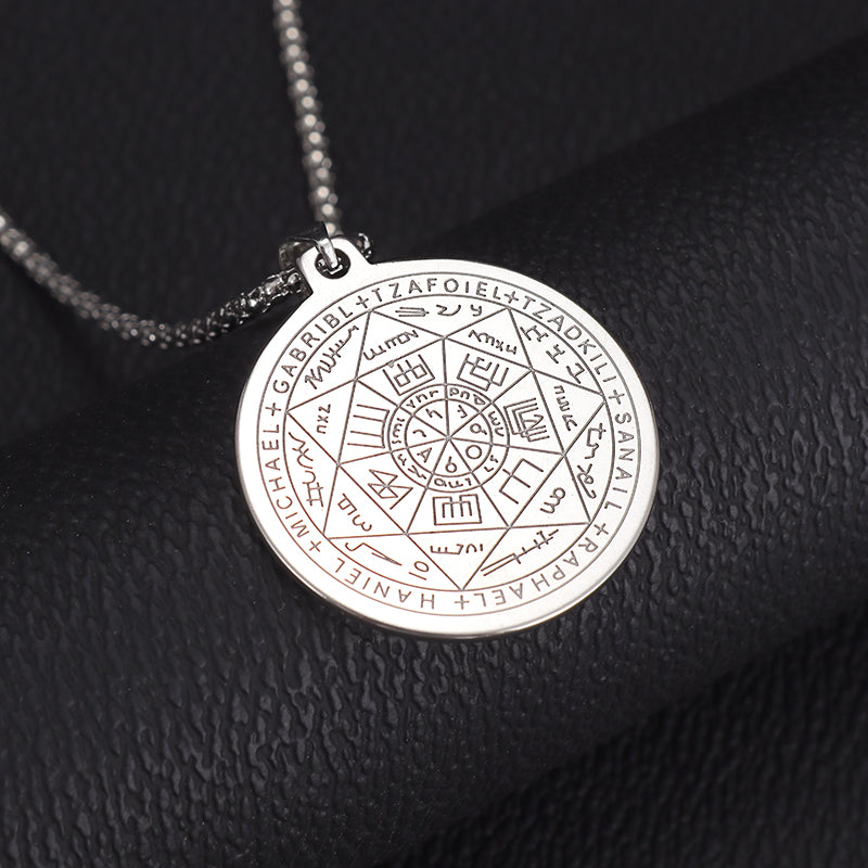 Cada detalle grabado representa la conexión con los siete arcángeles: Miguel, Gabriel, Rafael, Uriel, Zafkiel, Samael y Haniel, figuras celestiales invocadas para brindar guía, luz y resguardo en todo momento. Su diseño esotérico atrapa miradas, despierta curiosidad y transmite fuerza interior.