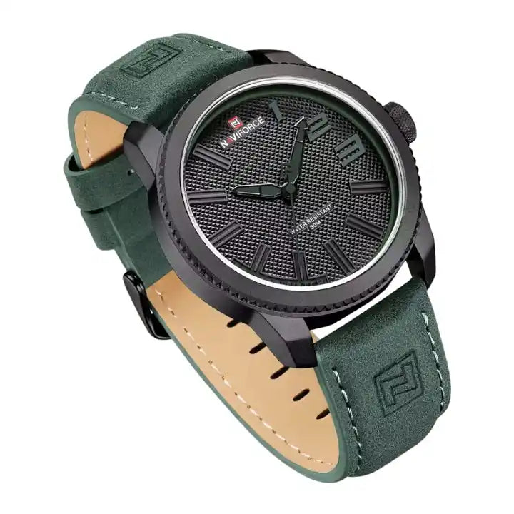 El Naviforce 9202 combina un diseño limpio con detalles que imponen carácter. Su fondo con diseño en relieve y marcadores audaces aportan firmeza visual, mientras que la correa de cuero asegura comodidad todo el día. Es el reloj ideal para hombres que prefieren un look sólido, sin excesos, pero con personalidad.